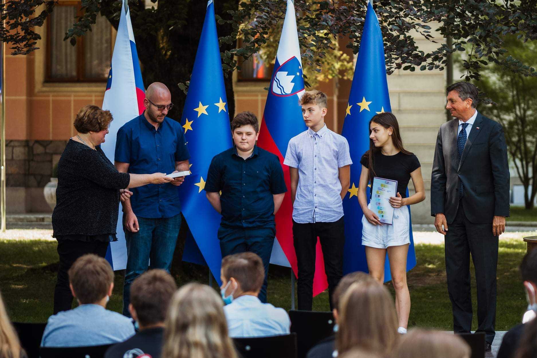 Učenci naše šole Andraž Arnečič, Neja Onič in Klemen Ješovnik, so se včeraj, 22. junija 2021, udeležili 52. srečanja mladih zgodovinarjev v vili Podrožnik v Ljubljani. Za raziskovalno nalogo, ki so jo pripravili pod mentorstvom učitelja Aleksandra Peklarja, z naslovom “Pekre – ko je odločnost Mariborčanov pregnala JLA”, so od predsednika Republike Slovenije, Boruta Pahorja, prejeli zlato priznanje.