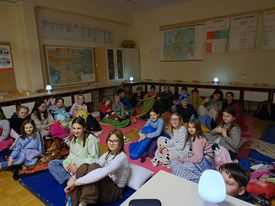 Na včerajšnjem večeru branja smo prebirali zgodbe iz Mačje preje, avtorice Svetlane Makarovič. Šolske kuharice pa so poskrbele za večerjo in tako je bilo naše nočno druženje še slajše.