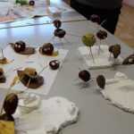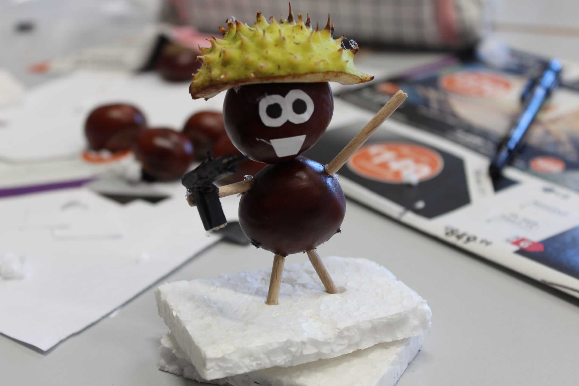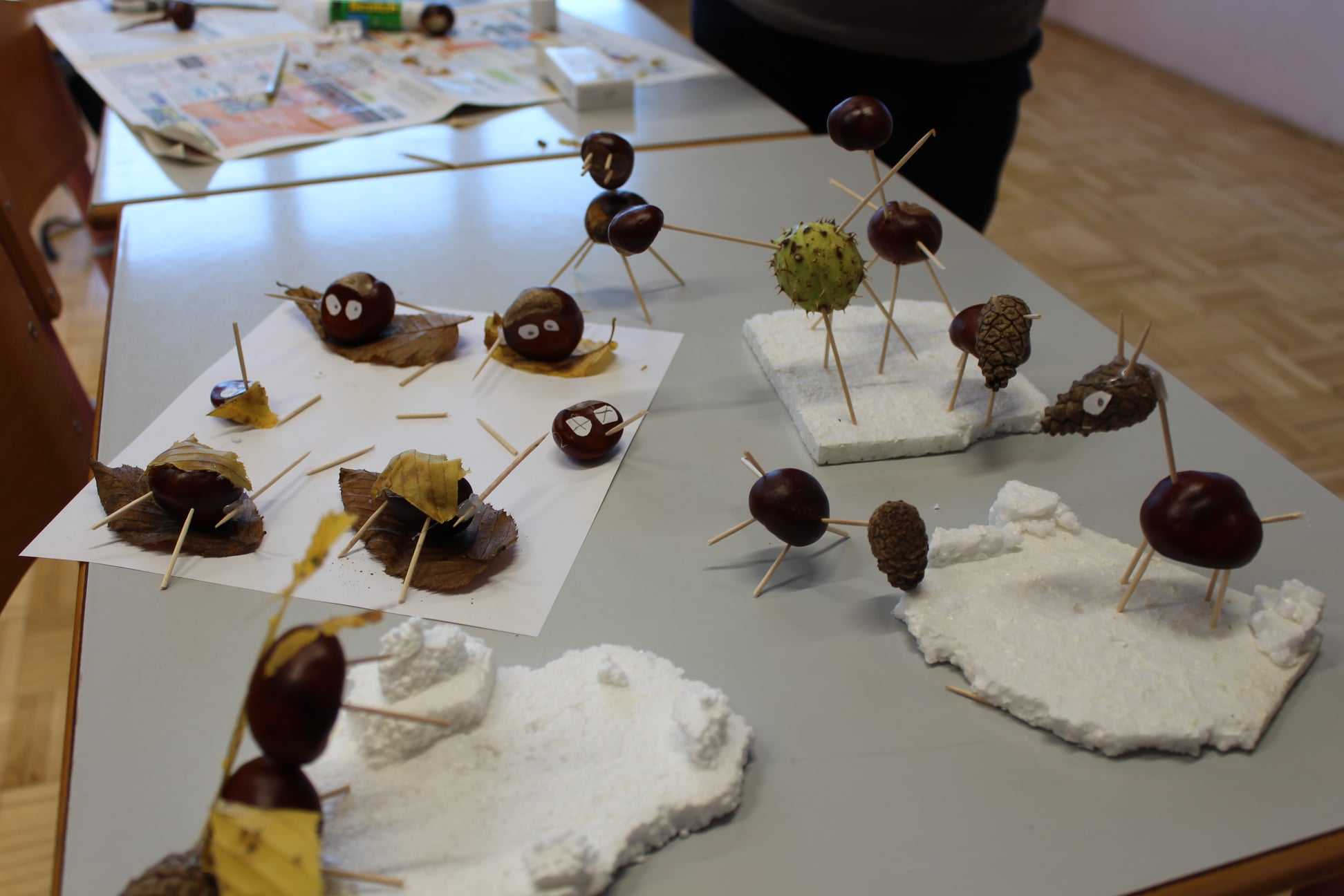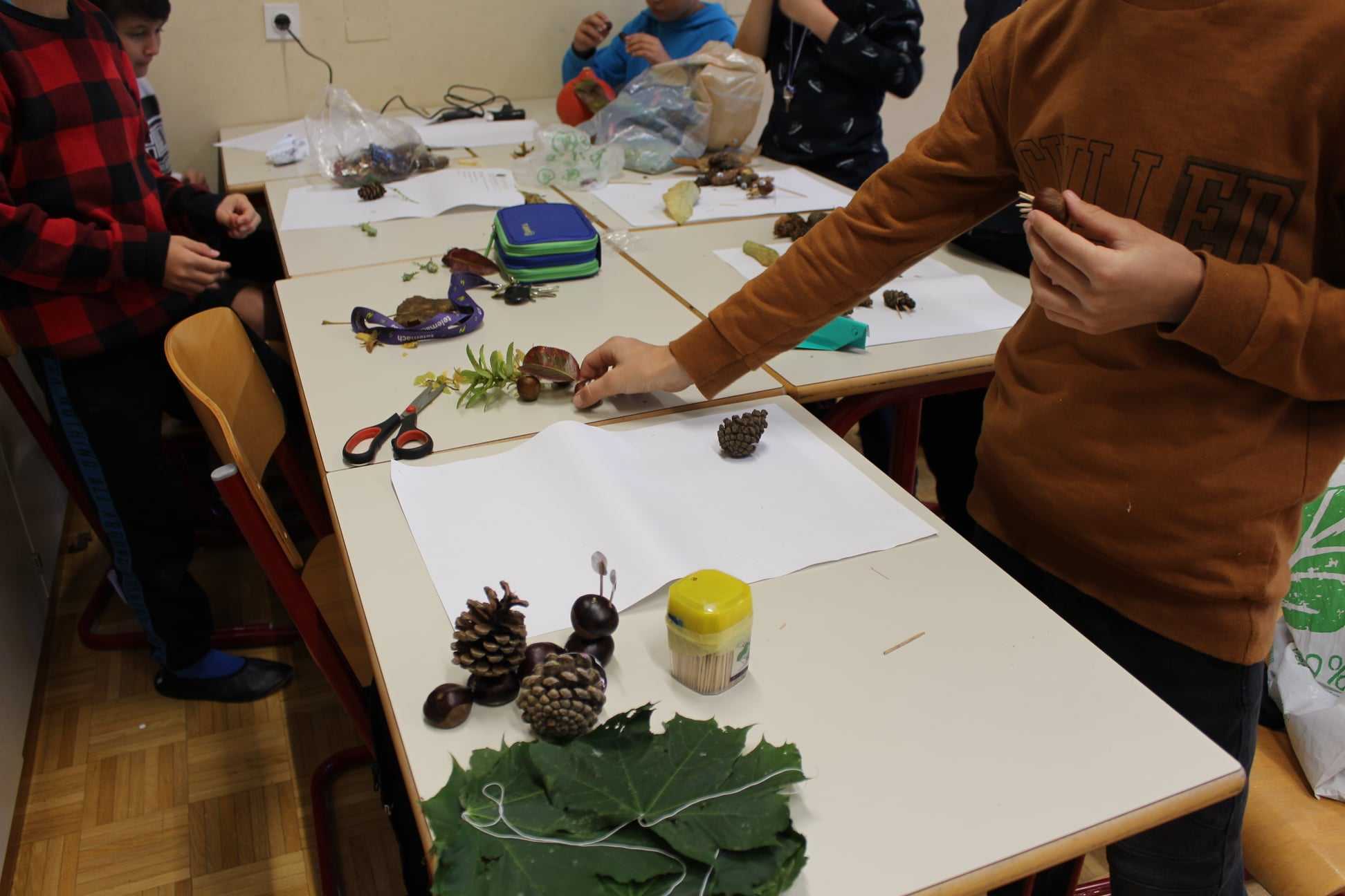 Narava nas je v tem jesenskem času bogato obdarila. Delček tega bogastva smo prinesli v šolo in ustvarjali. Razvili smo IDEJO in izdelali NAČRT za izdelke. Ob rekreaciji v naravi smo nabirali material za ustvarjanje tako v šoli kot tudi doma: pravi in divji kostanji, želodi, storži in pisano listje, slama, buče, vejice in še kaj so bili kot naročeni za jesensko ustvarjanje. Z izdelki smo okrasili šolske prostore. Za zaključek smo izdelali tudi origami ladjice kot del projekta »6 milijonov ladjic«.