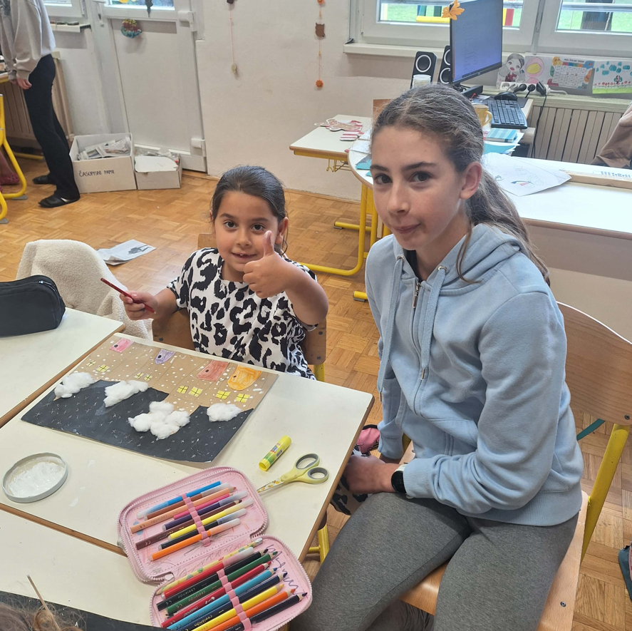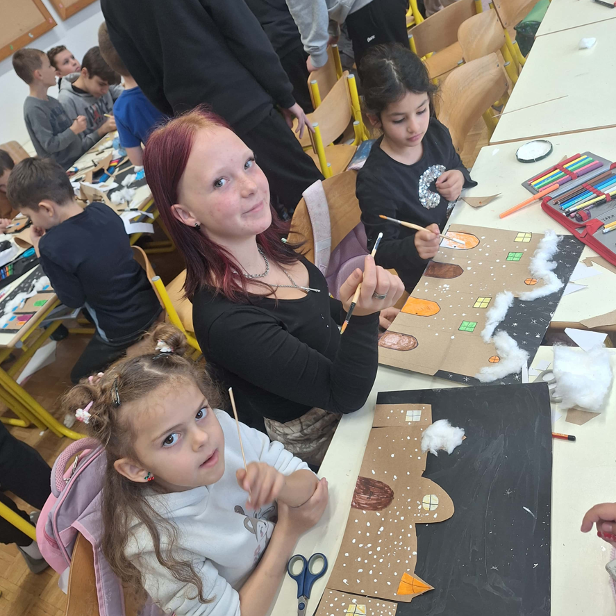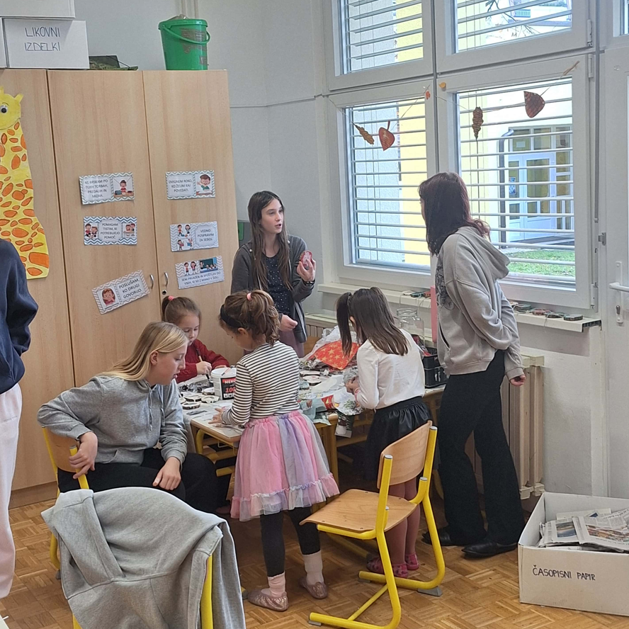 Prvošolčki so imeli ustvarjalni dan. Pridno in z veliko vnemo so pripravljali novoletne okraske ter izdelovali izdelke za prihajajoči božično-novoletni sejem. Med delom so učence obiskali varuhi iz osmega razreda. Teh se prvošolci vedno zelo razveselijo. Skupaj smo preživeli lep tehniški dan.