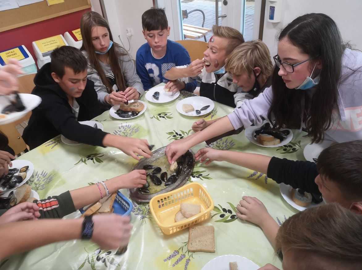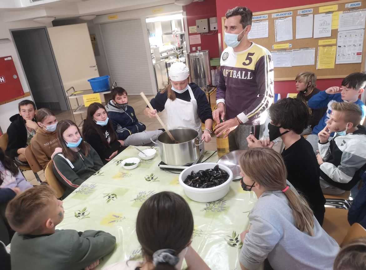 4.dan šole v naravi smo preživeli tekmovalno in kulinarično. Dopoldan smo raziskovali jezeri v Fiesi, tekmovali pa smo tudi v lokostrelstvu in odbojki. Prosti čas smo izkoristili za namakanje v morju in gradnji najvišjega stolpa iz kamnov. Popoldan smo spoznavali življenje v obrežnem pasu in pripravljali školjke na buzari. Po pojedini smo večer zaključili s sladkim presenečenjem.