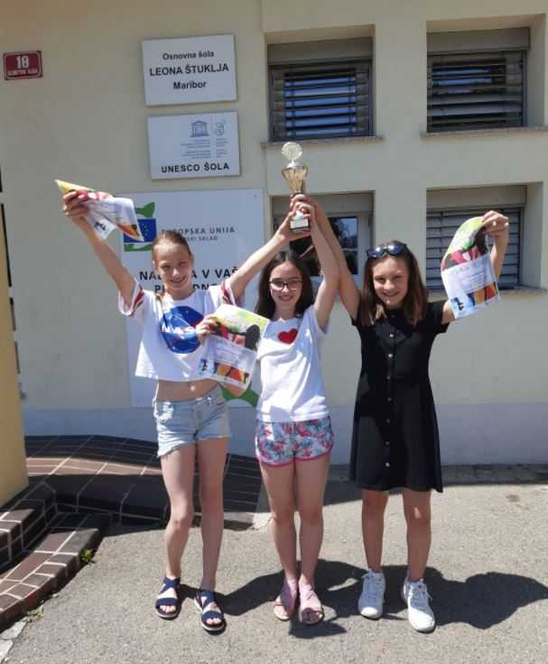 Šolsko leto se bo kmalu odvrtelo h koncu, tukaj pa je še ena plešoča športna objava! Se še spomnite novičke o Šolskem plesnem festivalu, v okviru katerega so na področnem tekmovanju nastopila tri naša dekleta? S ponosom razglašamo, da so Neli Mršič, Doroteja Maher in Kaja Kelemina v skupinskem izzivu z lastno koreografijo pod mentorstvom učiteljice športa Nuše Maver priplesale do 1. mesta! Svoj ples so pogumno posnele v naravi in tako pokazale, da lahko živahno srce poskočno poplesuje prav povsod, kjer se mu zahoče! Posnetek si lahko ogledate tudi na naši Facebook strani.