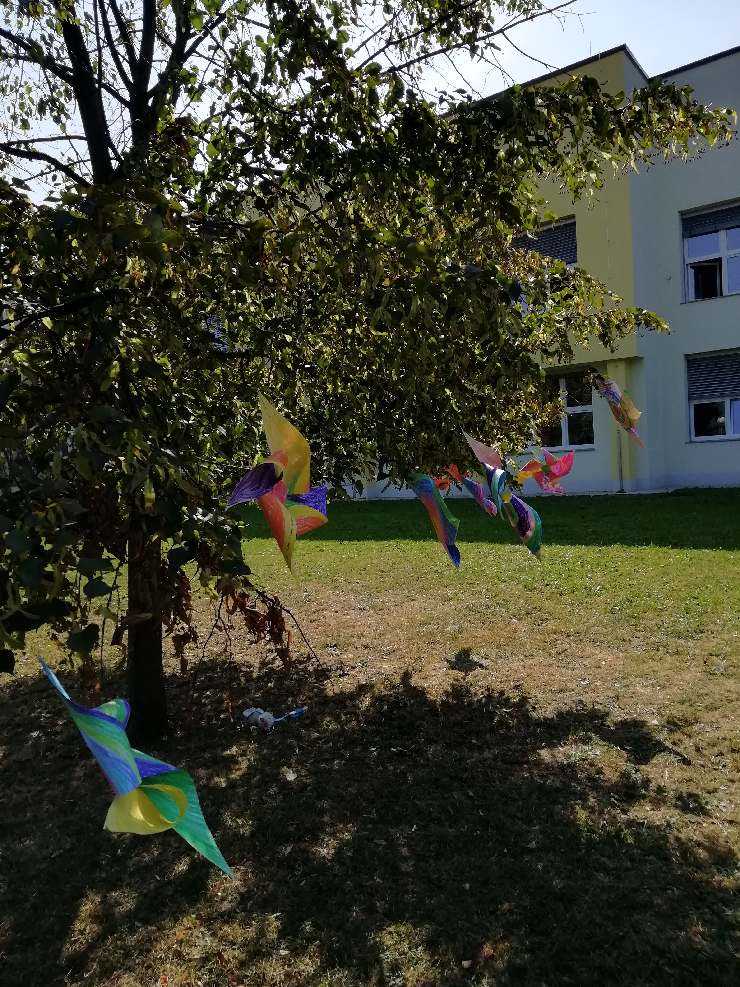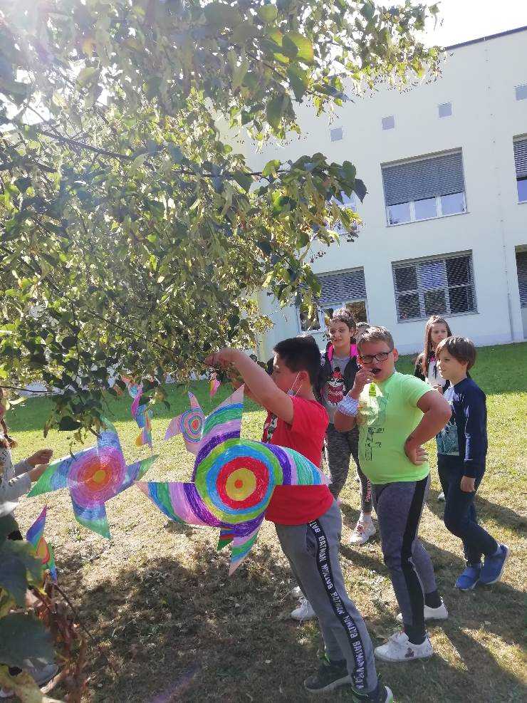 V ponedeljek, 21. 9. 2020, smo se z učenci četrtih in petih razredov v okviru mednarodnega dneva miru udeležili projekta Vetrnice za mir. Zaradi vseh zaščitnih ukrepov smo ga v letošnjem šolskem letu izpeljali v nekoliko drugačni obliki kot prejšnja leta. Vetrnice, ki smo jih izdelali pri likovni umetnosti, smo namesto v Mestnem parku, »posadili« v zunanji učilnici naše šole.